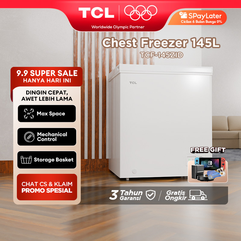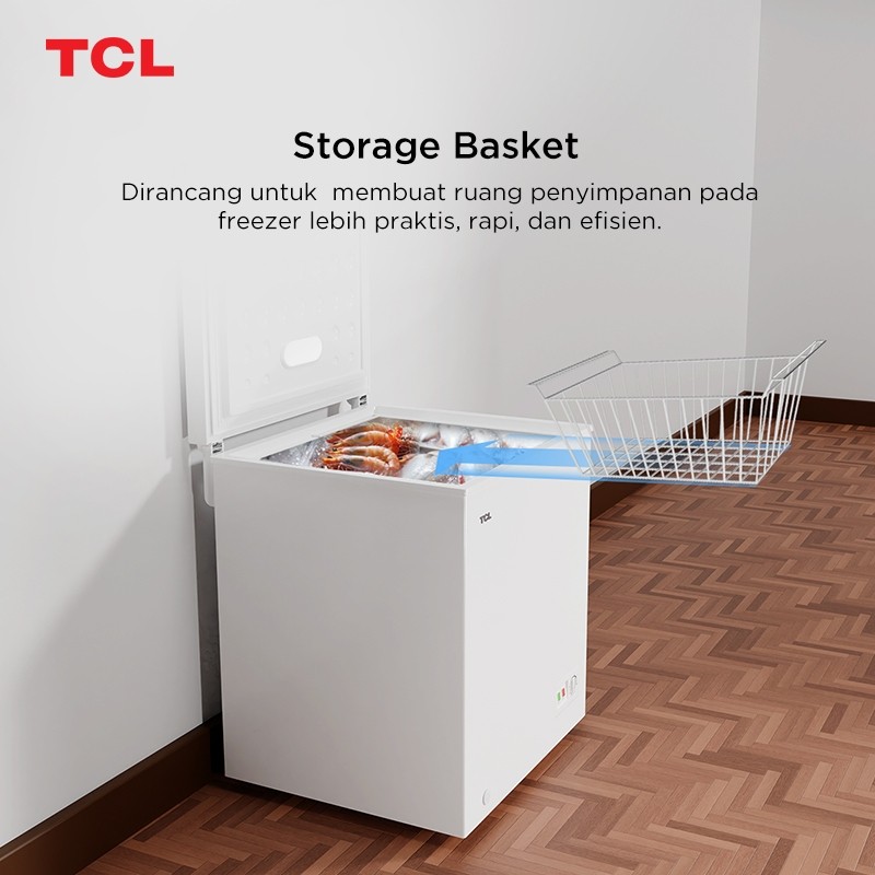 Chest Freezer Box TCL - 145 Liter Super Freezing - Storage Basket Besar - Pembuangan Limbah Air - Lampu LED - Child Lock
