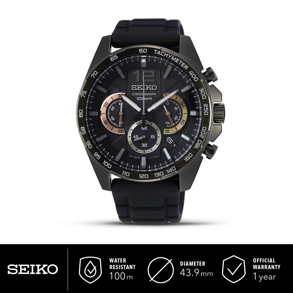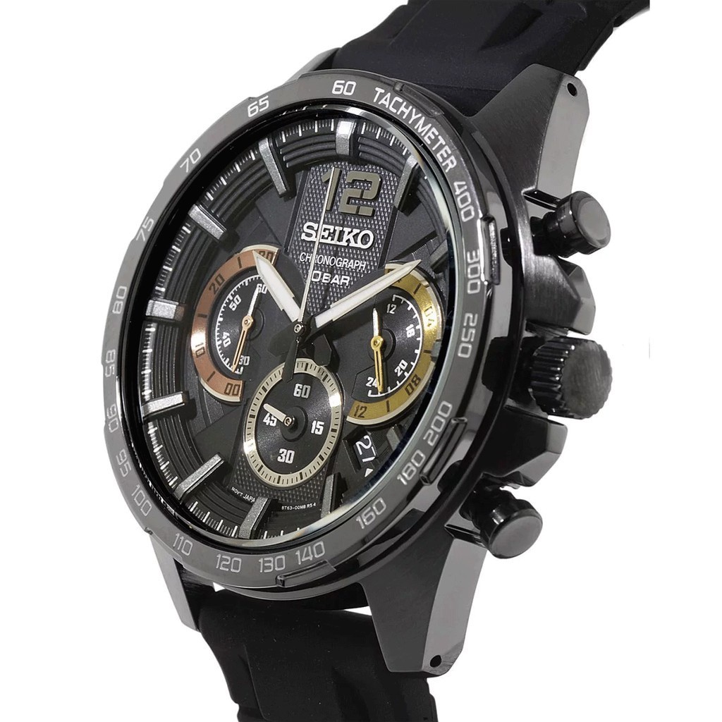 Jam Tangan Pria Seiko Chronograph SSB349P1 Neo Sport Black Dial Black Rubber Strap