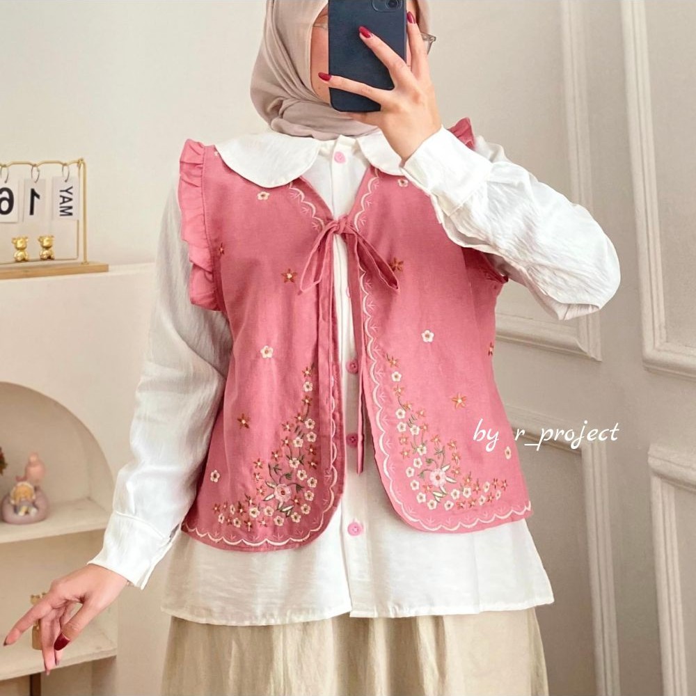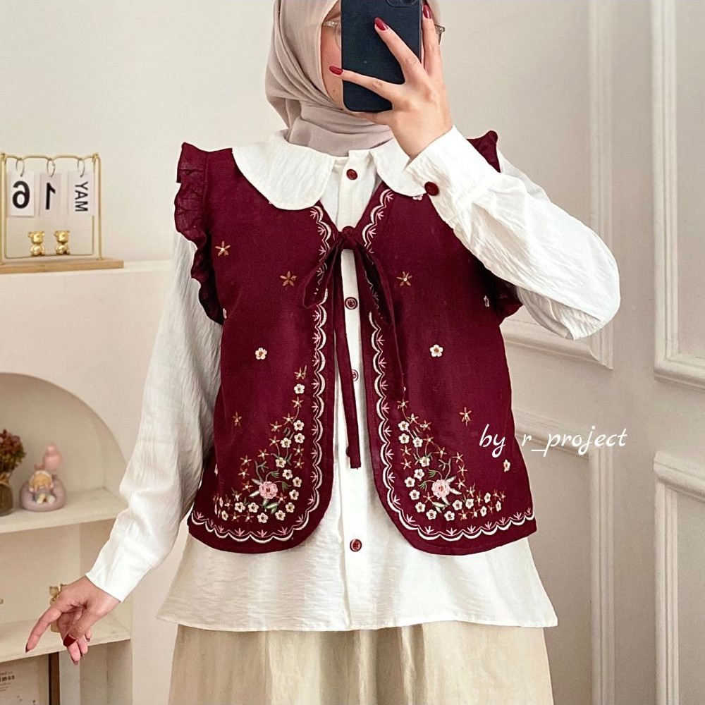 Deedye shirt | atasan wanita bordir rompi - atasan korea style - size XXL XL L M S - bahan linen by r_project