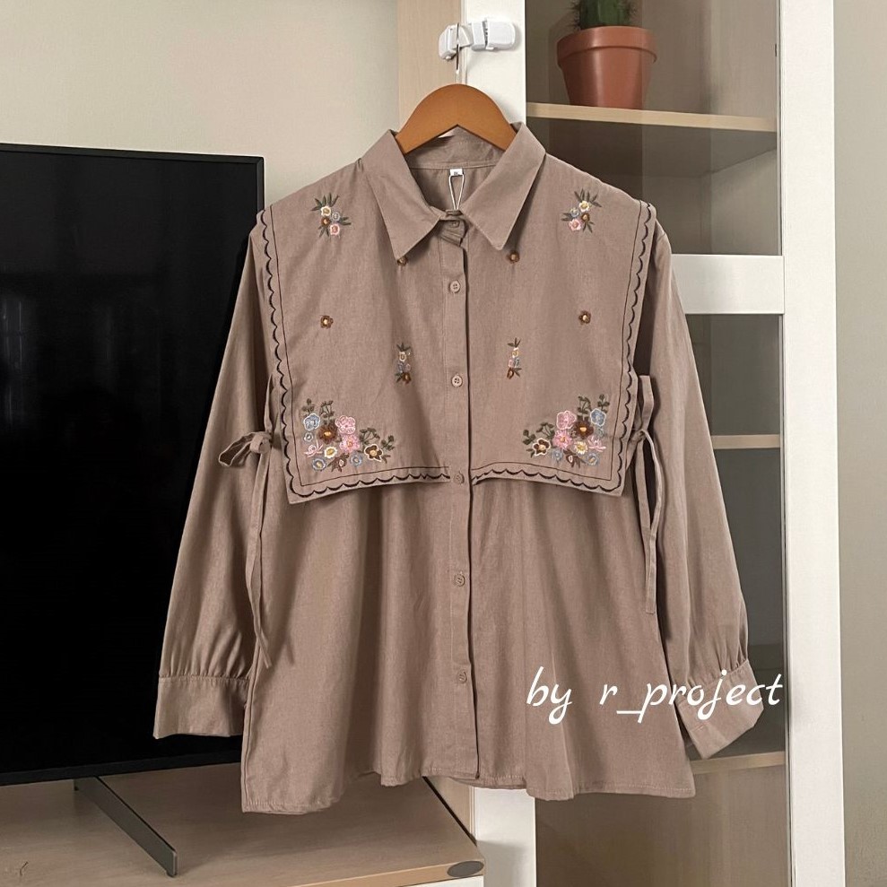 KEMEJA BORDIR BAHAN LINEN - Ukuran S M L XL XXL XXXL 5L - Kemeja Jumbo - Atasan Wanita Jumbo - Narika shirt