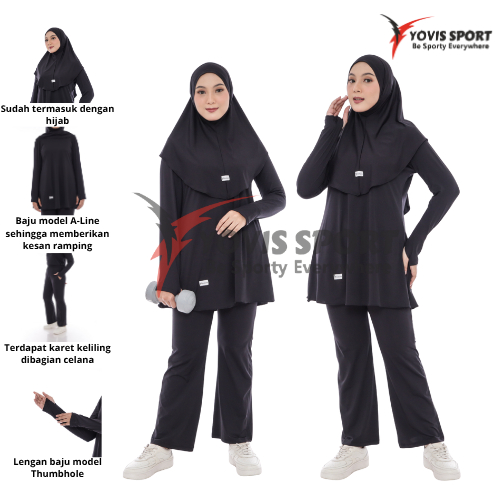 Baju Setelan Olahraga Wanita Oneset Hijab Wanita Oneset Padel Oneset Olahraga Muslim Yovis Sport