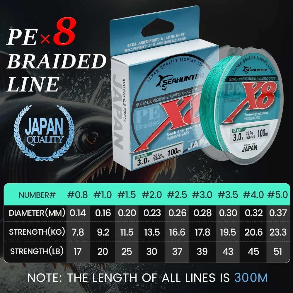 [Star] Blue Shark 100M&150M&300M PE X8 Senar Pancing Tahan Aus Senar PE X8 Hijau Merah Anti Kusut Tali Pancing Dikepang