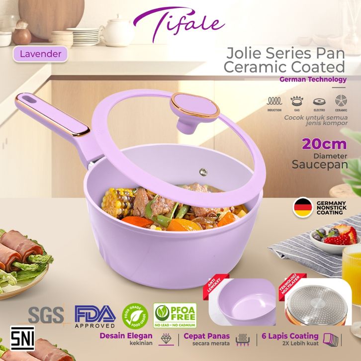 Aesthetic Jolie Sauce Pan 20Cm Lavender Panci Granit Marble Anit Lengket