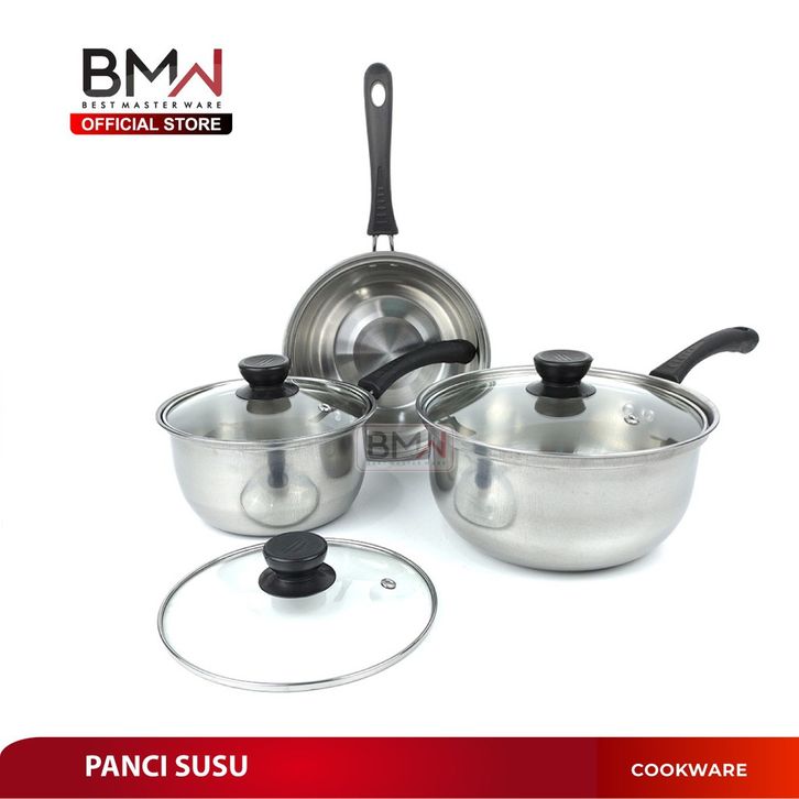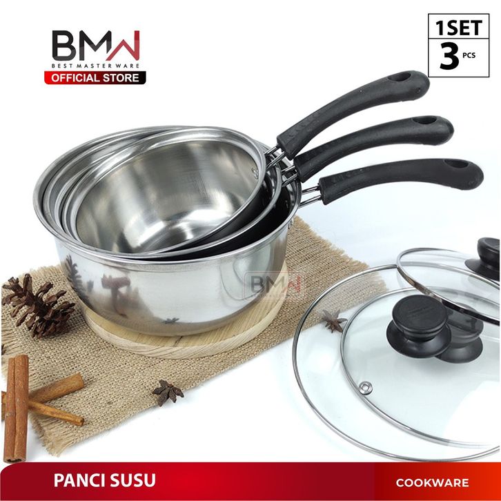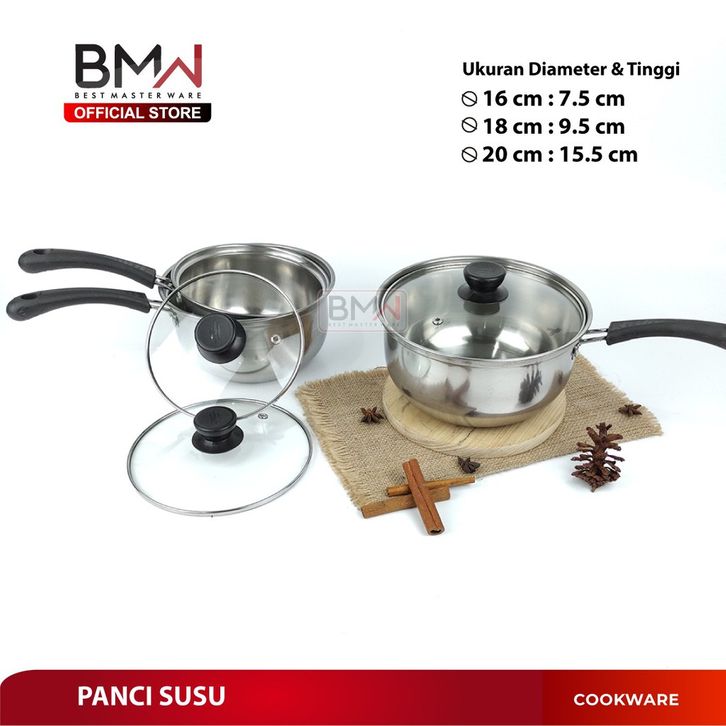 Panci Susu Stainless Steel Milk Pot Soup Pot Panci Sup Tutup Kaca