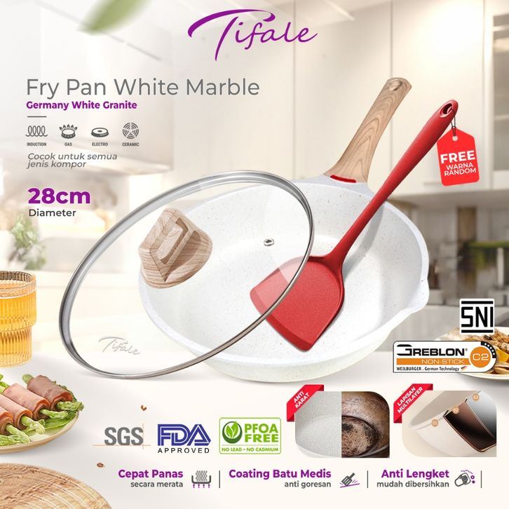 Frypan 28 Cm White Granit Fry Pan Peralatan Masak Dapur Anti Lengket