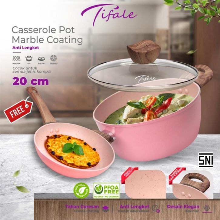 Buy1Get2 Alice Casserole Pan 20Cm Free Frypan 16Cm Anti Lengket