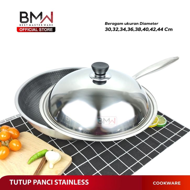 Tutup Panci Wajan Kuali Fry Pan Wok Pan Penggorengan Stainless Tutup Anti Panas