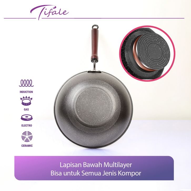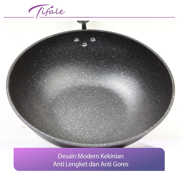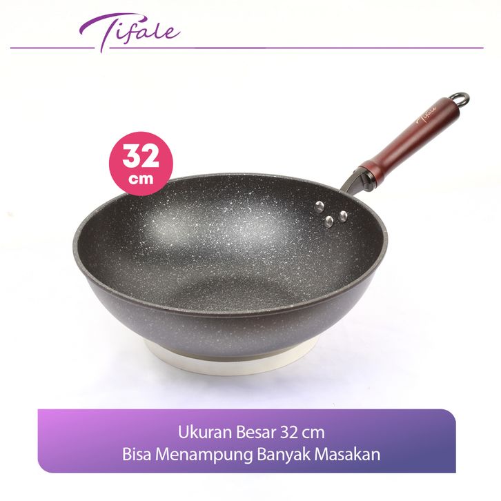 Wajan Fry Pan Bahan Marble Anti Lengket 32 Cm Wajan Penggorengan Maifan Stone Free Spatula