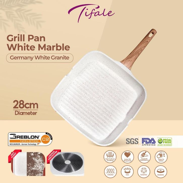 Grill Pan 28 Cm White Granit Grillpan Pemanggang Peralatan Masak Dapur Anti Lengket