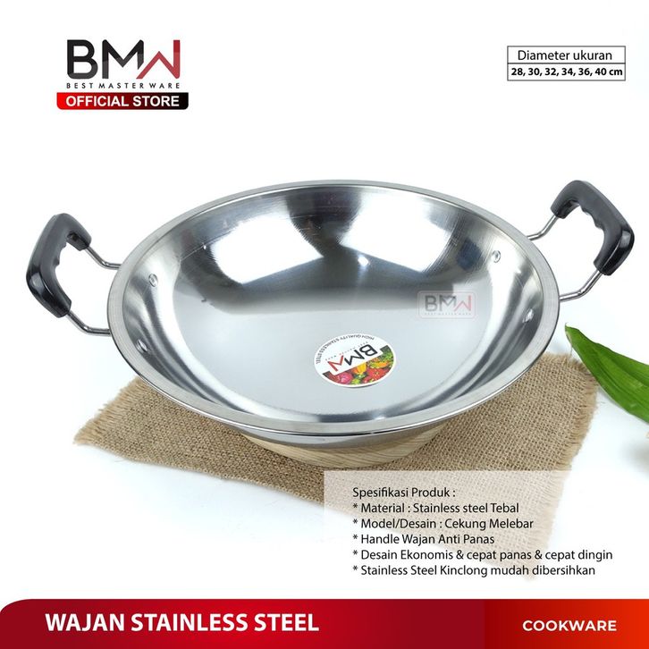 Wajan Kuali Wok Pan Penggorengan Stainless Steel Tebal Anti Lengket