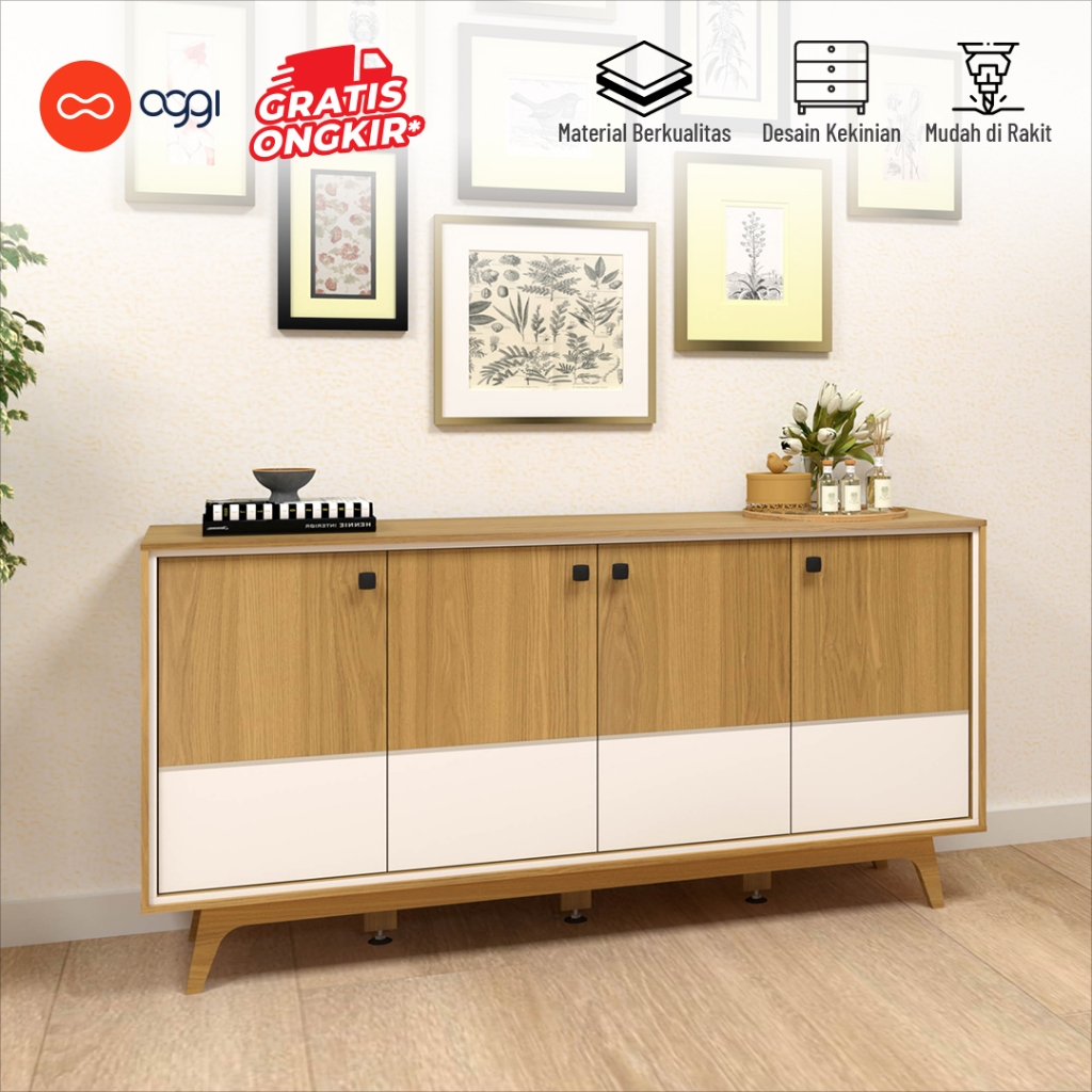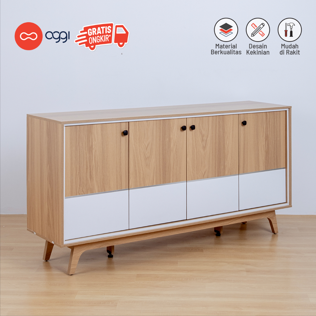 Rak Buffet Sergabguna / Buffet TV Minimalis Aesthetic / Lemari 4 Pintu Laci Penyimpanan Rak Tv / Meja Tv Gratis Ongkir