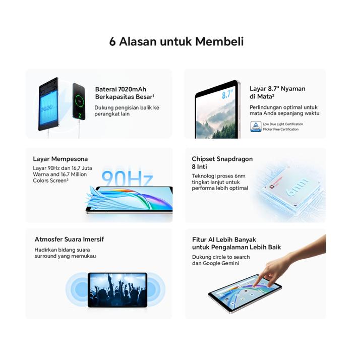 [Official Store✔] Honor Pad X7 Wifi RAM 4/128GB Layar 8.7 Inci Baterai 7020mAh Garansi Resmi 12 Bulan