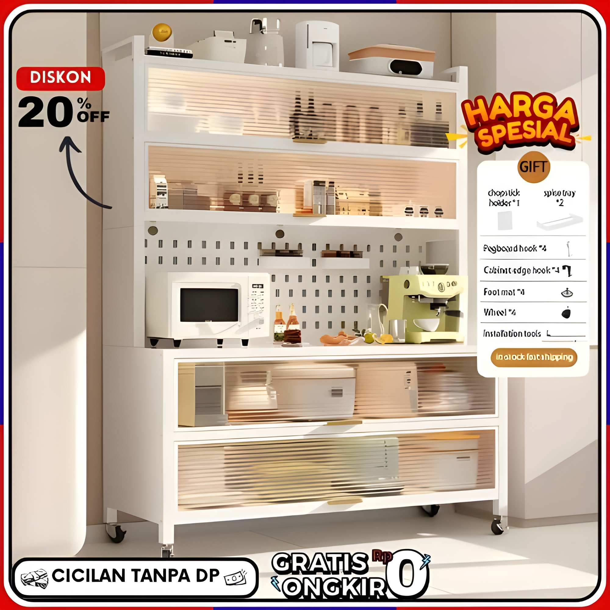 Rak Piring Minimalis Modern SIV Lemari Piring Dapur Minimalis Modern Penyimpanan Oven Microwave