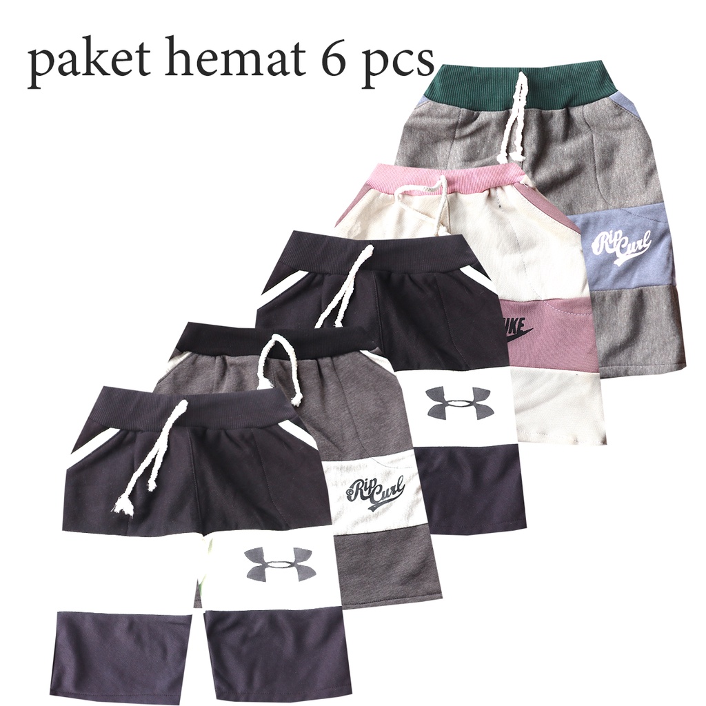 6 Pcs Celana Pendek Anak Laki Laki kolor joger Kombinasi 2 Warna Umur 2 - 10 Tahun