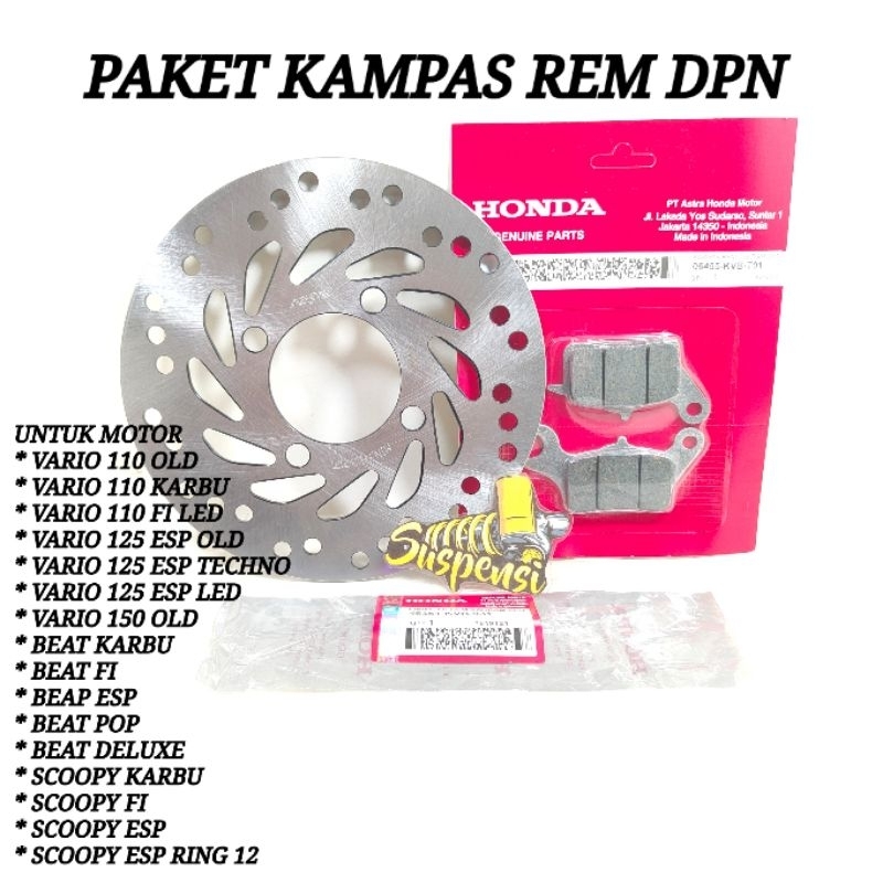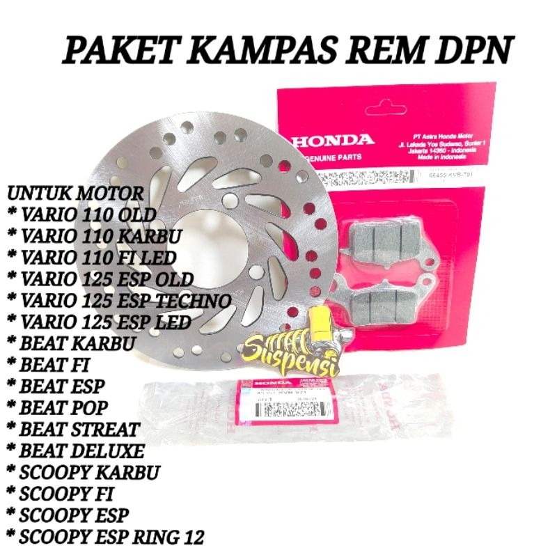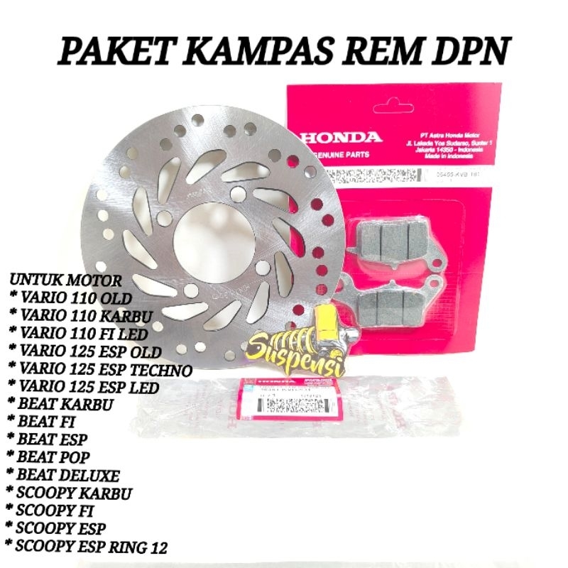 PAKET PIRINGAN DISC PLUS KAMPAS REM DEPAN BEAT FI SCOOPY FI BEAT POP SPACY FI VARIO 125 FI KVB piringan cakram beat
