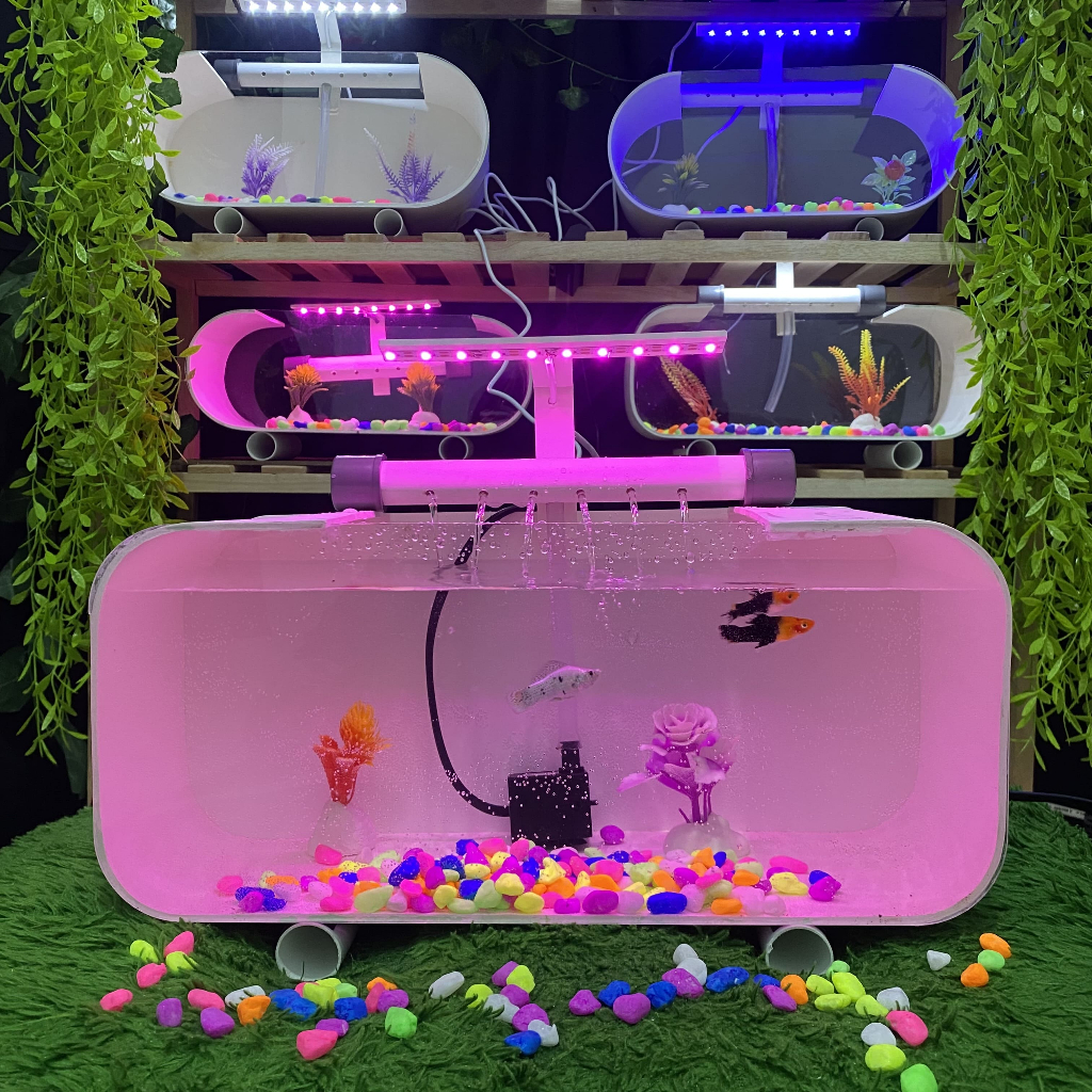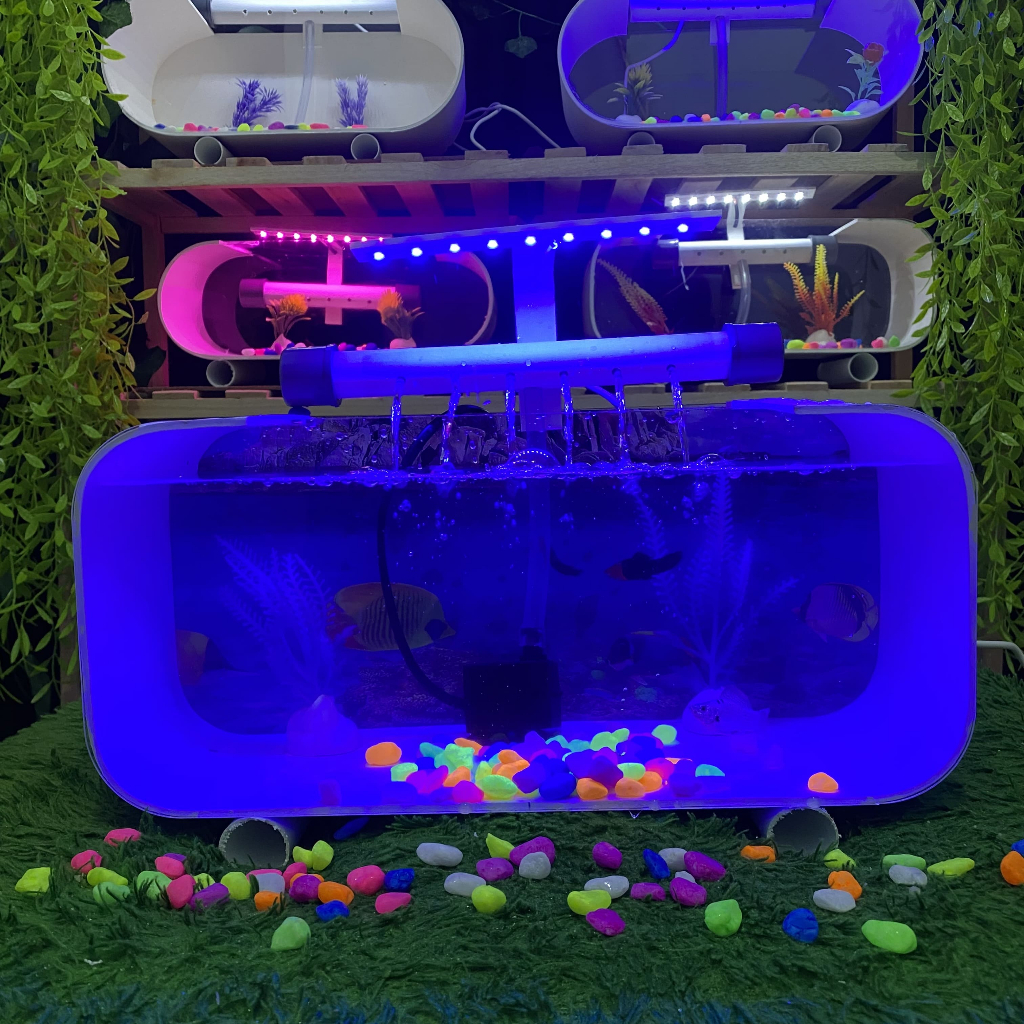AQUARIUM AKRILIK PERSEGI FULLSET BACKGROUND PERMANEN TEMPAT IKAN CUPANG CANTIK HIASAN RUMAH