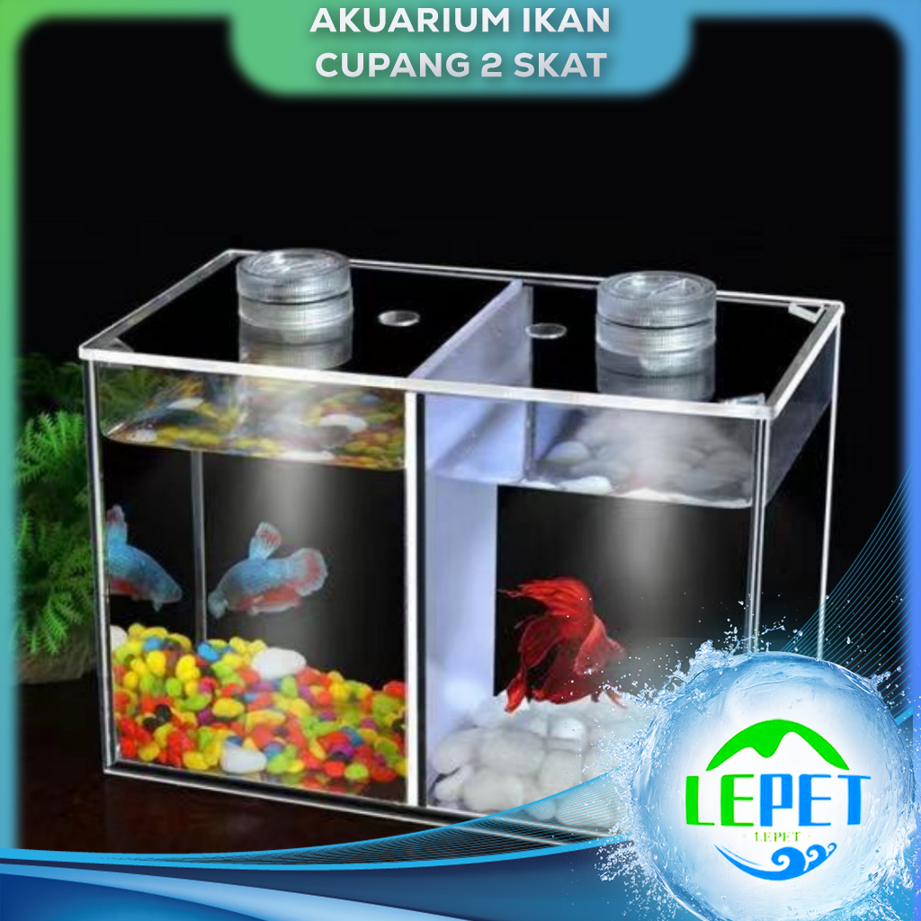 LEPET Akuarium Ikan Cupang 2 skat / Tempat Ikan Kecil Akrilik / Aquarium Mini Acrylic