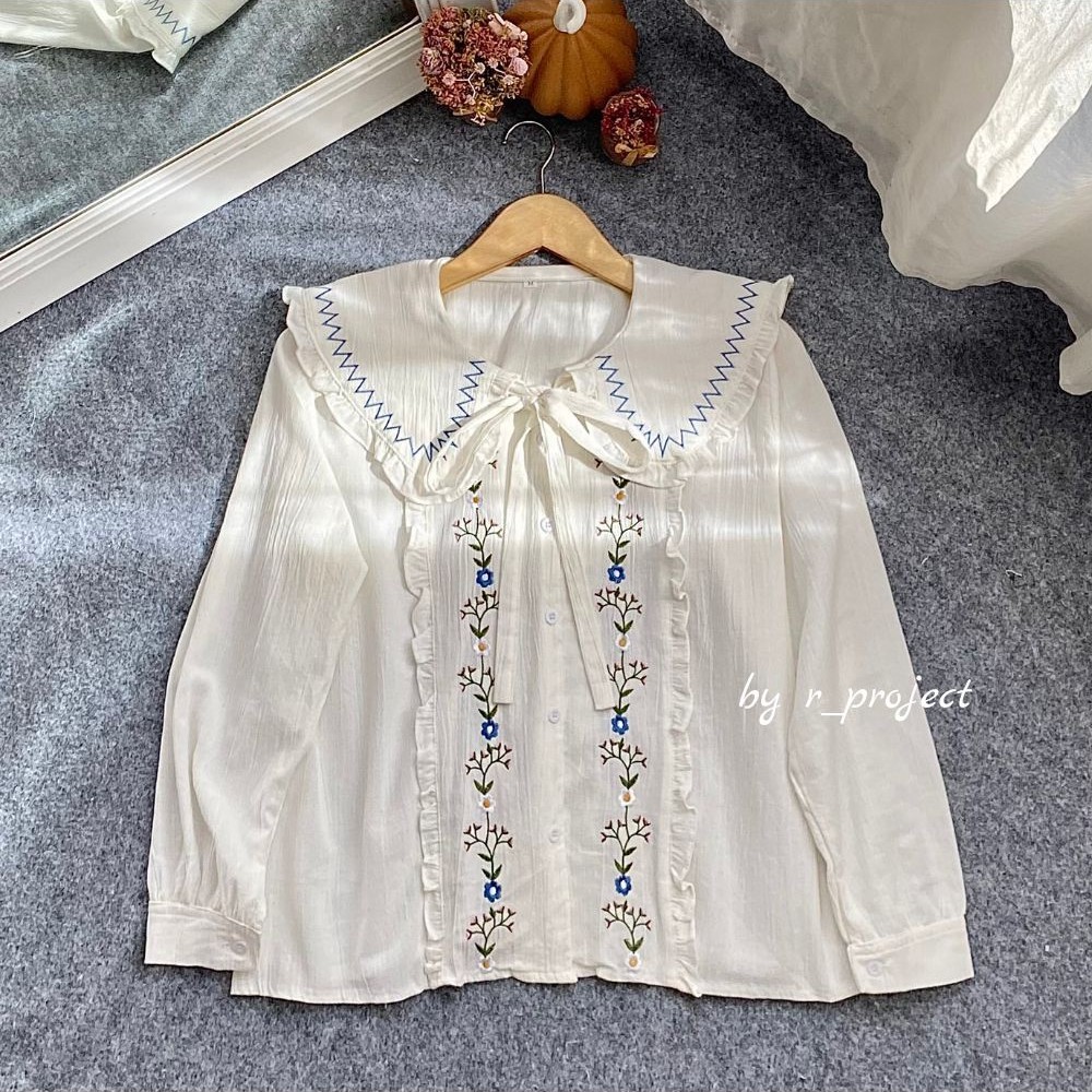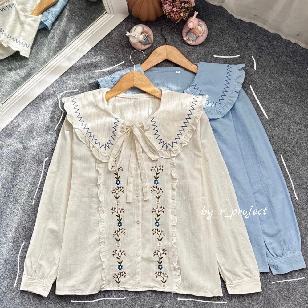 Atasan bordir wanita bahan linen krinkle | ukuran ld 120 110 104 96 92 | atasan korean style by r_project | Calianna blo