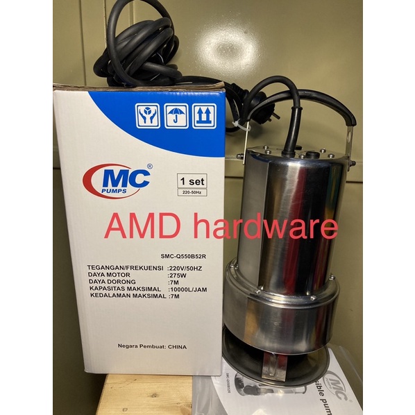 PROMO MC PUMP SMC-Q550B52R POMPA CELUP STAINLESS SUBMERSIBLE 275W 200W AUTO / MANUAL BISA AIR BERSIH & KOTOR WSD 8-8-0.3
