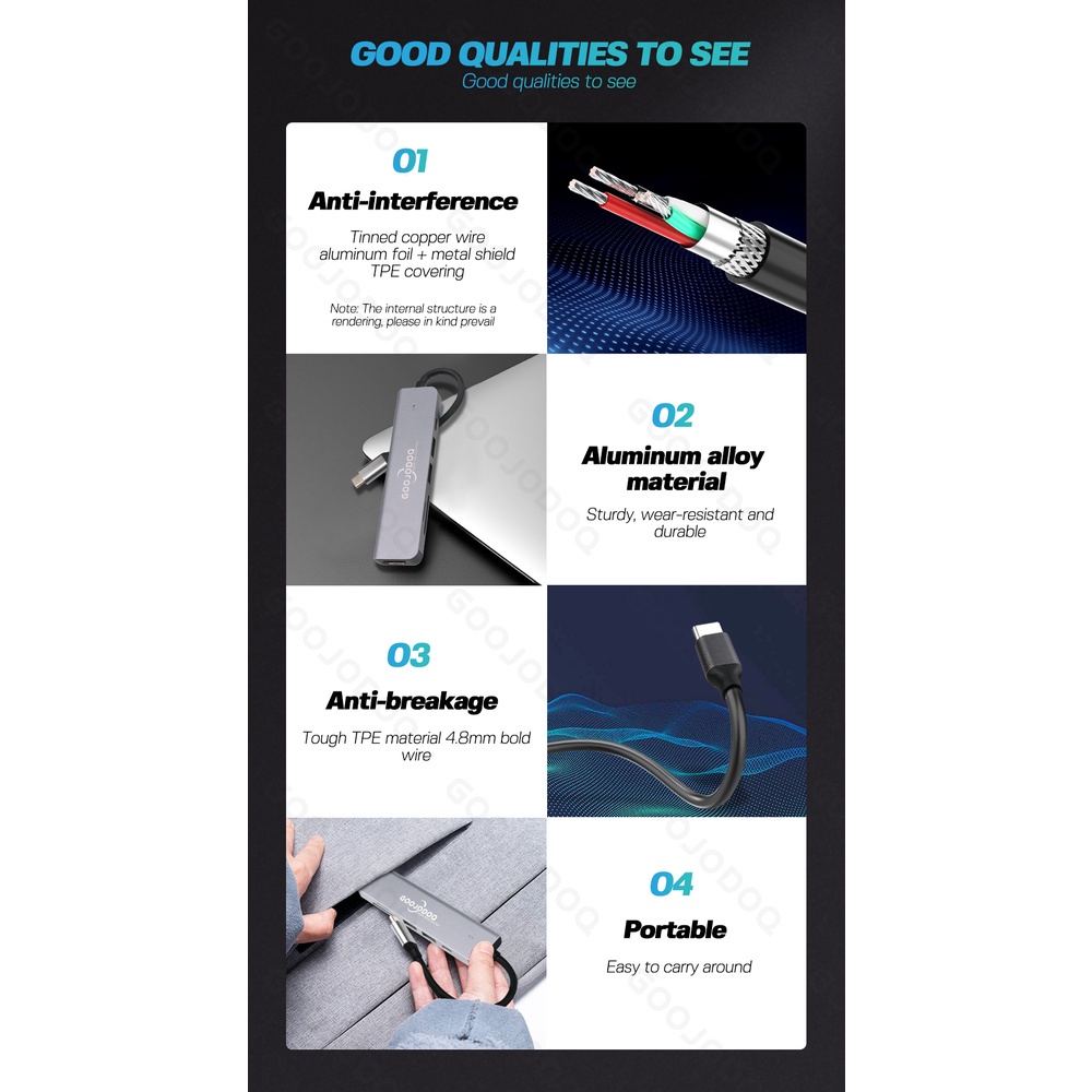Adapter Konverter USB Type C 6 in 1 – Hub USB 3.0 OTG PD Fast Charging HDMI HD untuk Laptop Macbook iPad Pro