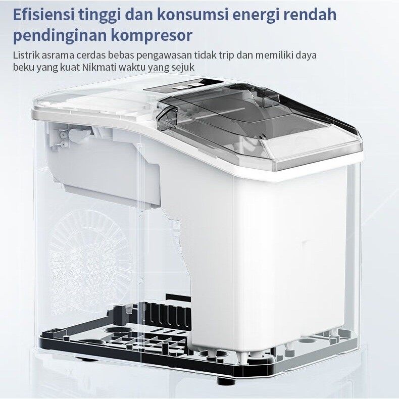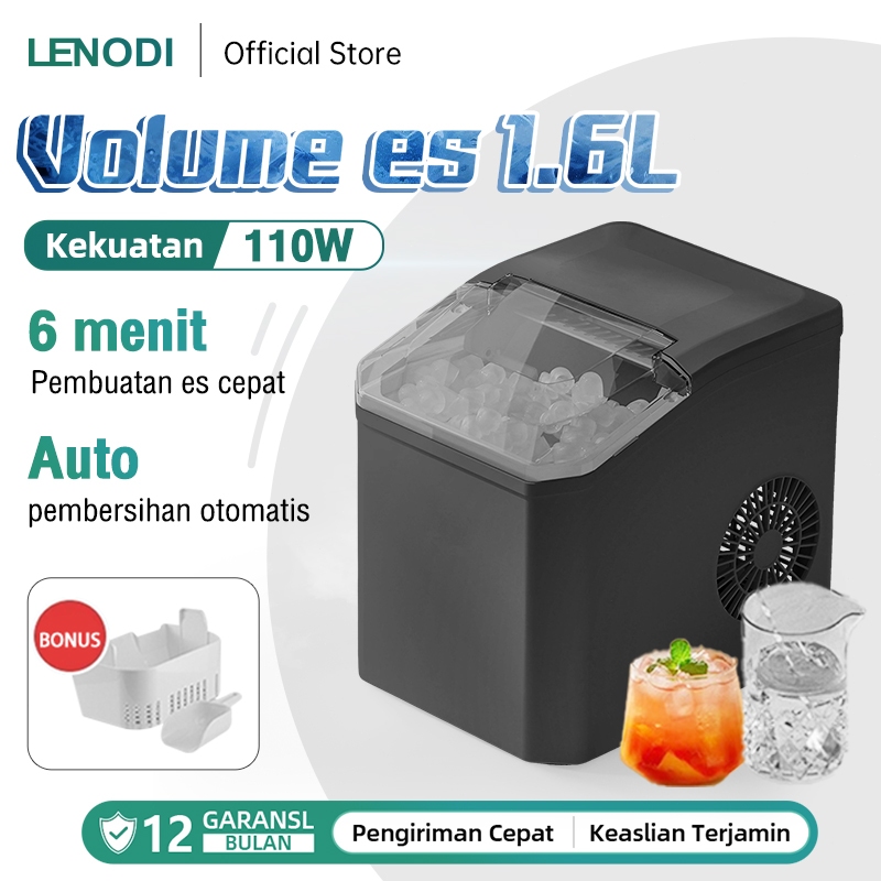 LENODI Mesin Pembuat Es 110w/1.6L, Mesin es portabel menghasilkan 15 kg es per hari, Pembersihan Otomatis, Pembuat Es Ot