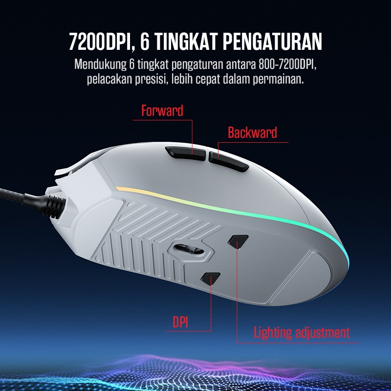 GAMEN Mouse Gaming Kabel 7200 DPI 6 Level DPI GM210 For Laptop / PC Original - Garansi 1 Tahun