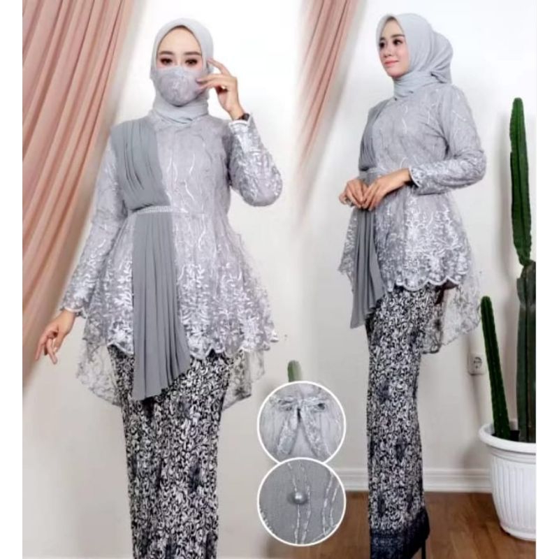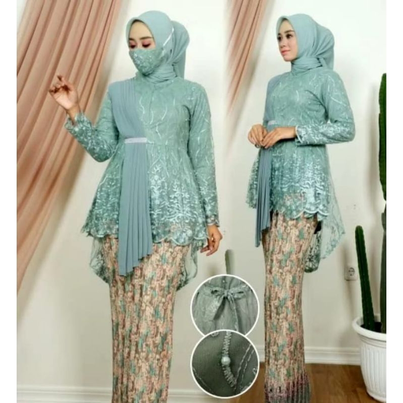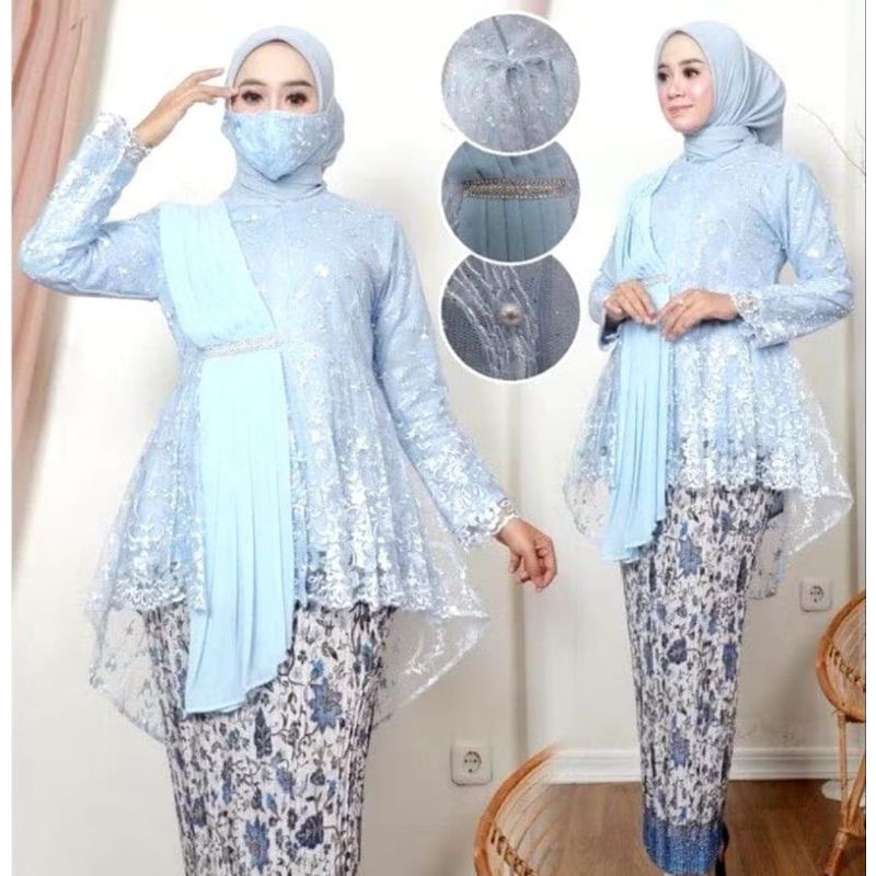 STELAN KEBAYA BLOUSE SELENDANG AUREL BAJU WISUDA PAKAIAN SERAGAM NIKAHAN | NAVY