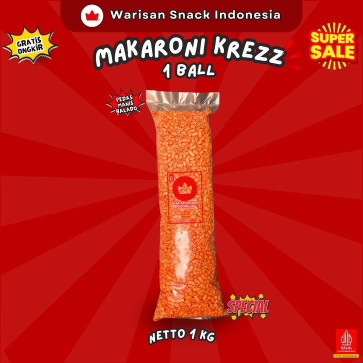 MAKARONI BANTAT WARISAN SNACK INDONESIA (1kg) Makanan Ringan Krupuk Cemilan Murah halal pedas daun jeruk (1 Ball)