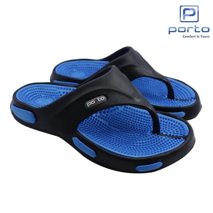 Sandal Jepit Kesehatan Porto 605 - Black-Blue | Black-Red | Black-Grey | Coffee-Khaki Karet