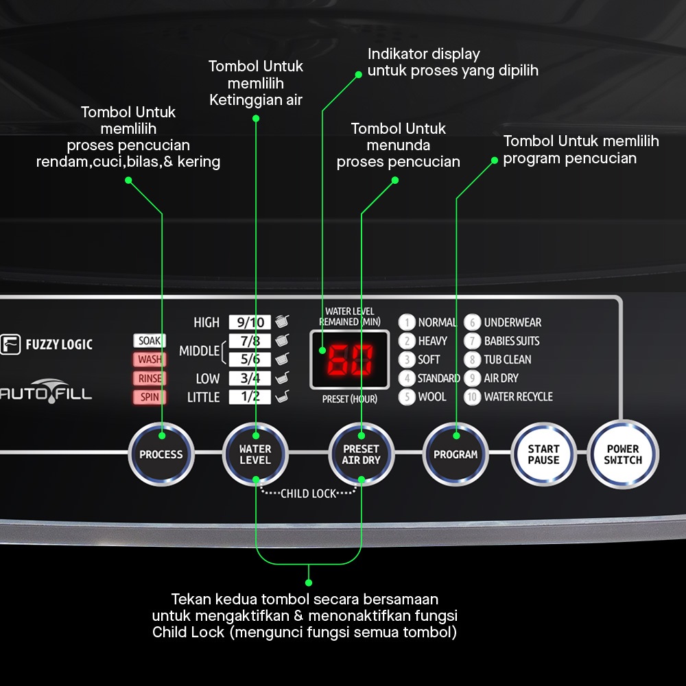 MESIN CUCI TOP LOADING SANKEN 1 TABUNG 8 KG AWS807J OTOMATIS WASHING BUKAAN ATAS GARANSI RESMI MURAH
