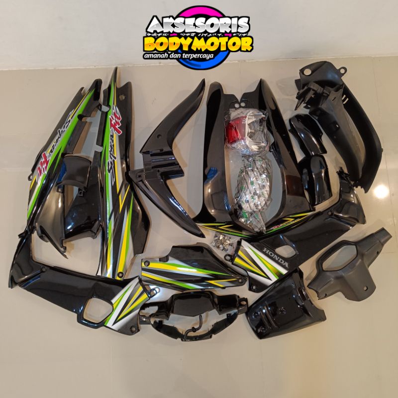 FULL BODY HALUS DAN KASAR HONDA SUPRA FIT LAMA / SUPRA X LAMA HITAM (REM DEPAN CAKRAM/TROMOL) + STIRIPING, BAUT, REFLEKT