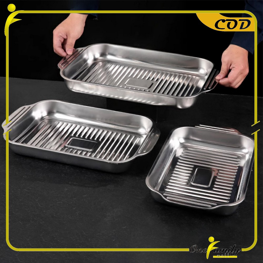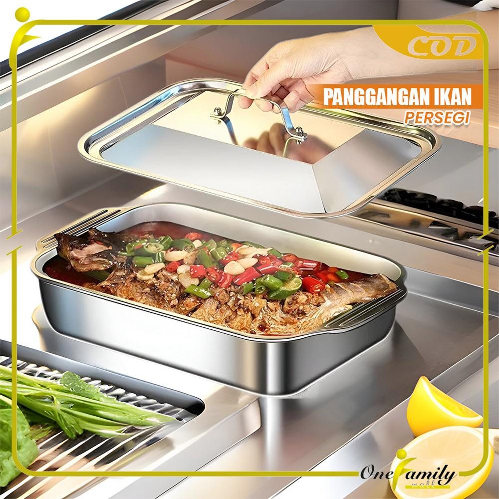 ONE-C1236 Panci Stainless Set Tutup Wadah Saji Lauk Tempat Prasmanan Luxury Panggangan Ikan Persegi Panjang Tahan Kara