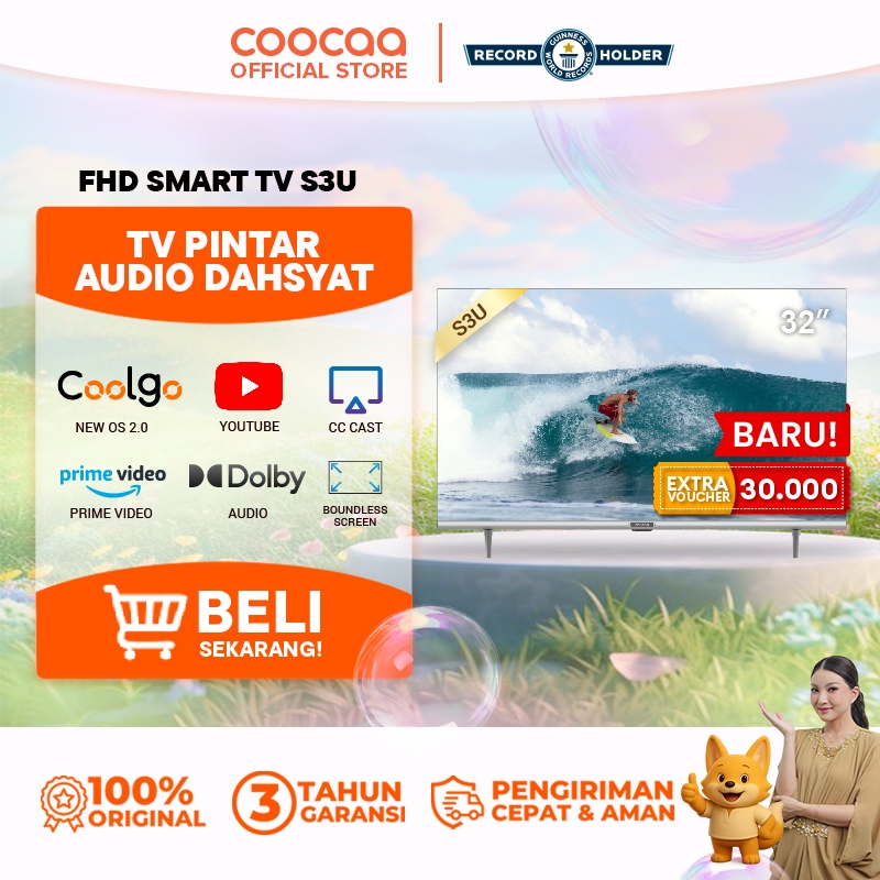 COOCAA Smart TV 32 Inch S3U – Digital TV, HD, Dolby Audio, YouTube, Mirroring, Flicker Free, Boundless, WiFi, USB