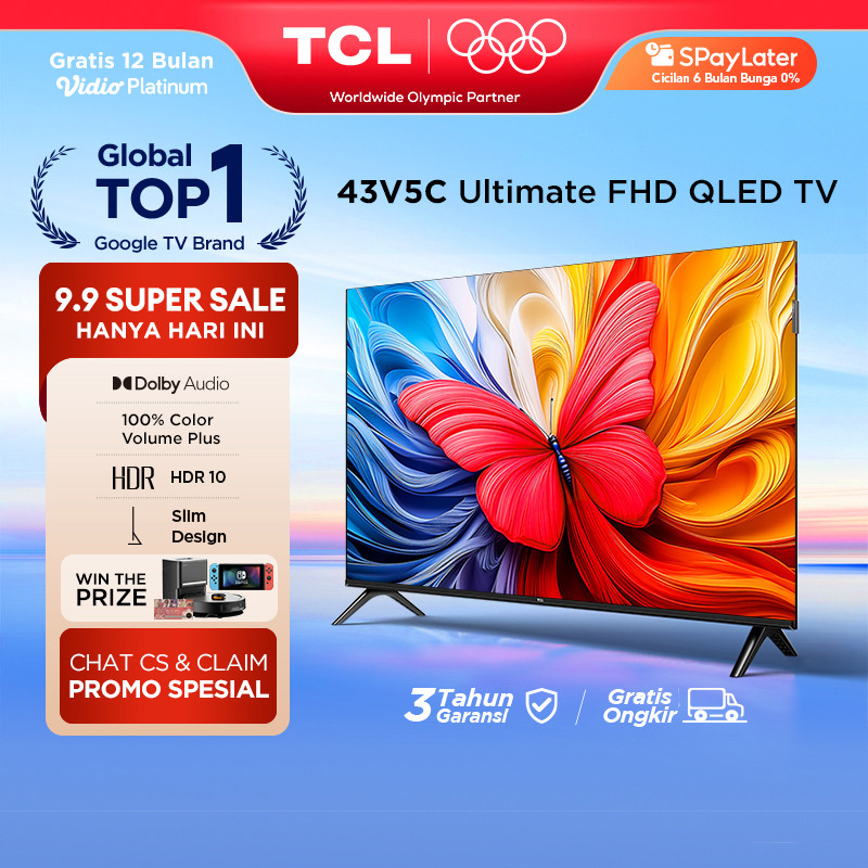 TCL Ultimate QLED FHD TV 43 Inch V5C – Smart Android TV, HDR10, Dolby Audio, Google TV, Netflix YouTube Disney+ Hotstar
