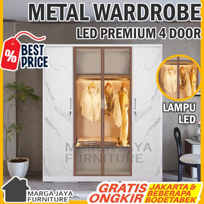 LEMARI BAJU PAKAIAN BESI JUMBO SLIDING 2 / 3 PINTU ANTI RAYAP & BANJIR - JUMBO GARIS, TANPA RAKIT