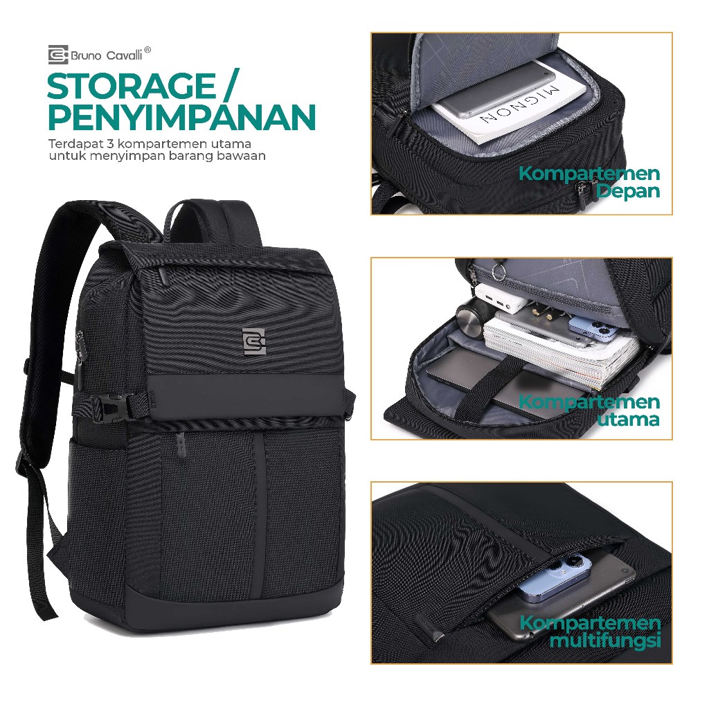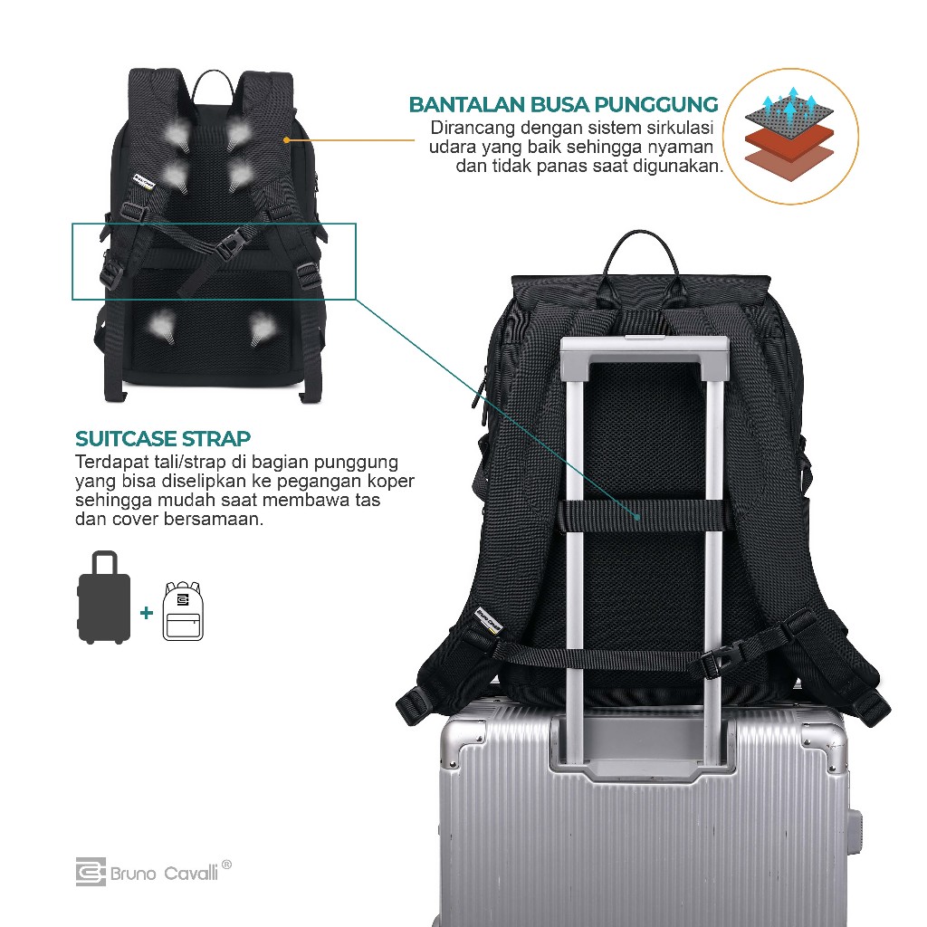 Bruno Cavalli Tendenze 18320 Ransel Laptop Anti Air Gratis Rain Cover Up to 17 Inch