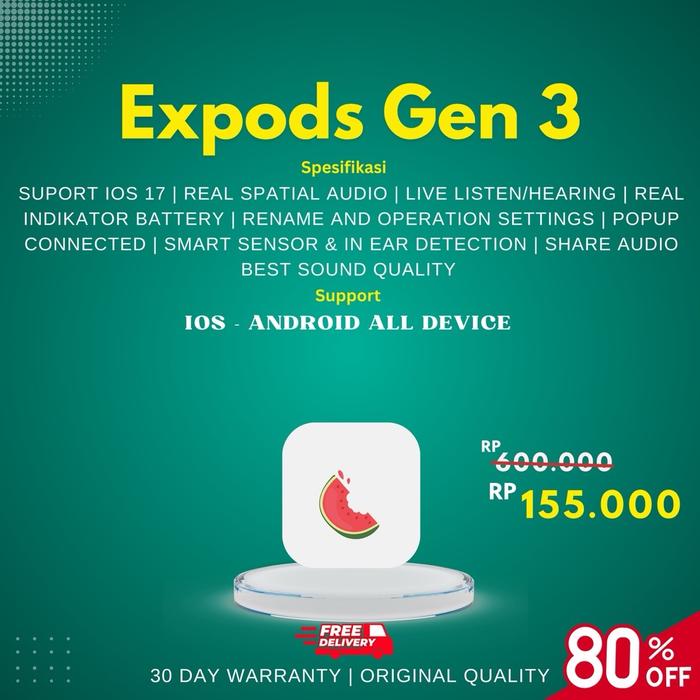 Expods Gen 3 TWS Earphone Bluetooth Wireless Charging Case