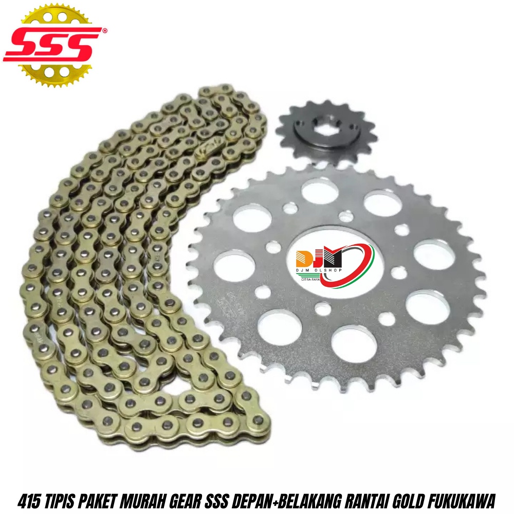 GEAR SET PAKET SSS 415 TIPIS RANTAI GOLD YAMAHA VIXION OLD - VIXION NEW - BYSON - R15