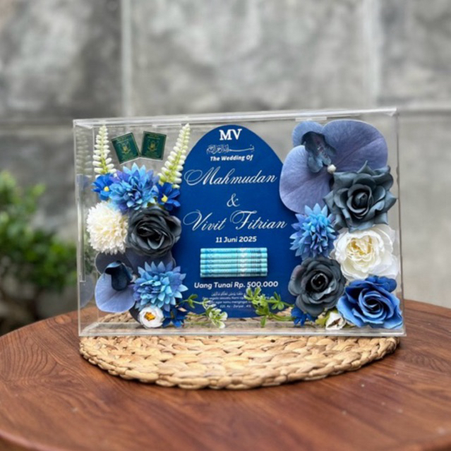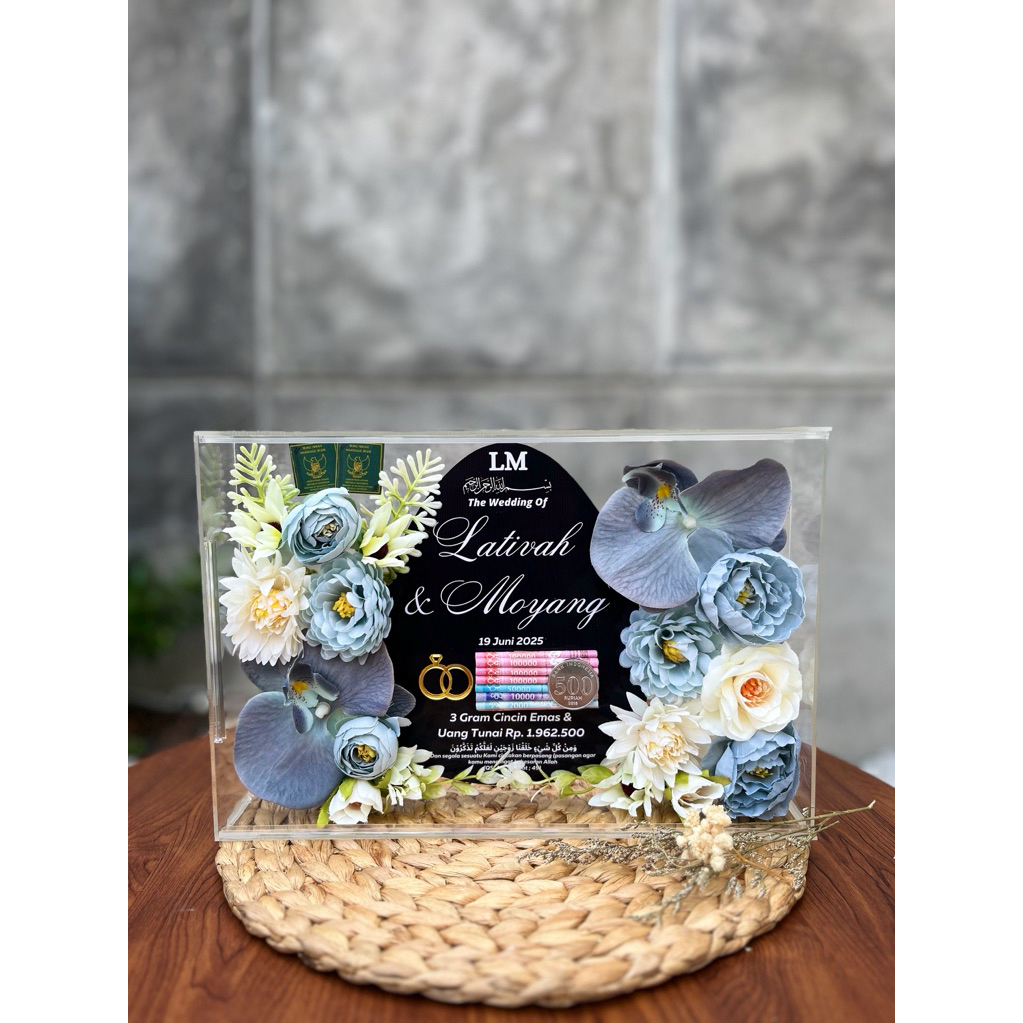 Mahar Pernikahan Akrilik 30X20 Full Bunga | Bingkai Mahar Pernikahan/ 1 Hari Jadi
