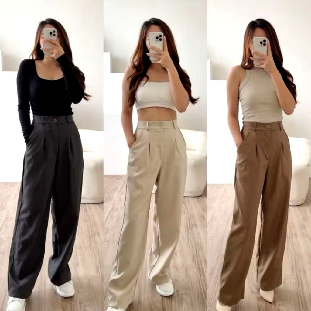 [Mall] CELANA KANTOR WANITA CELANA PANJANG WANITA LOOSE FIT HIGWAIST ANTI KUSUT CASUAL KEKINIAN