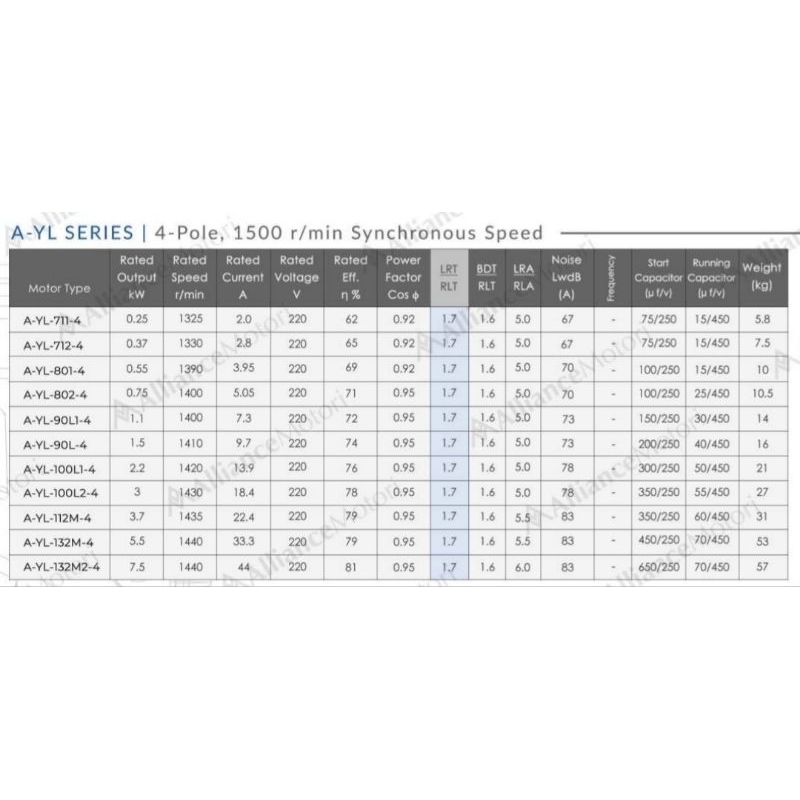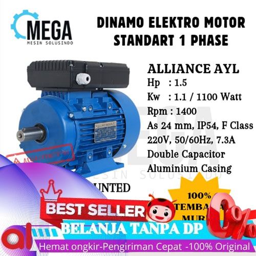 [Mall] Alliance Dinamo 1 Phase 1.5 HP 1.1 KW 1400rpm Dual Capasitor 100% FULL TEMBAGA -- Electro Motor AYL 4 Pole B3