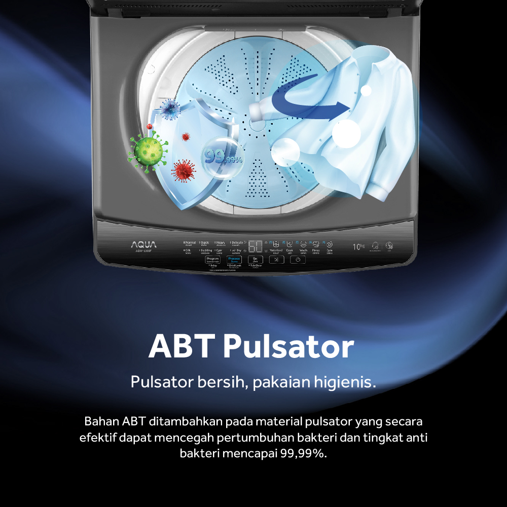 AQUA Mesin Cuci 1 Tabung 8Kg / 9Kg / 10Kg Top Loading Pillow Drum - ABT Pulsator - Quick Wash - Air Dry - GARANSI RESMI