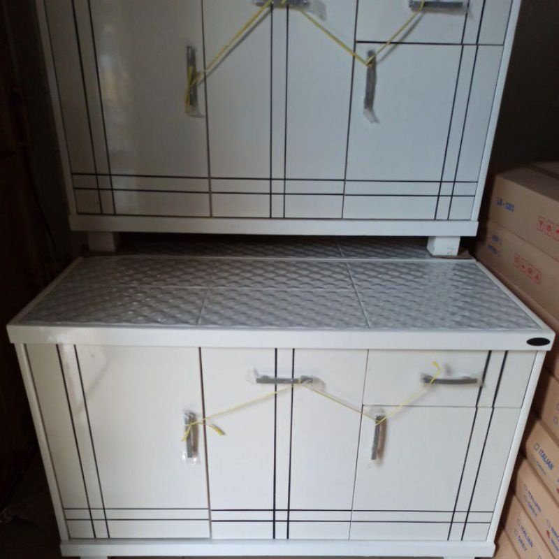 MEJA KOMPOR 2 TUNGKU KAYU KERAMIK RAK PIRING 3 PINTU KITCHEN SET BAWAH MINIMALIS MODERN MURAH TERLARIS ANTI RAYAP JAMUR