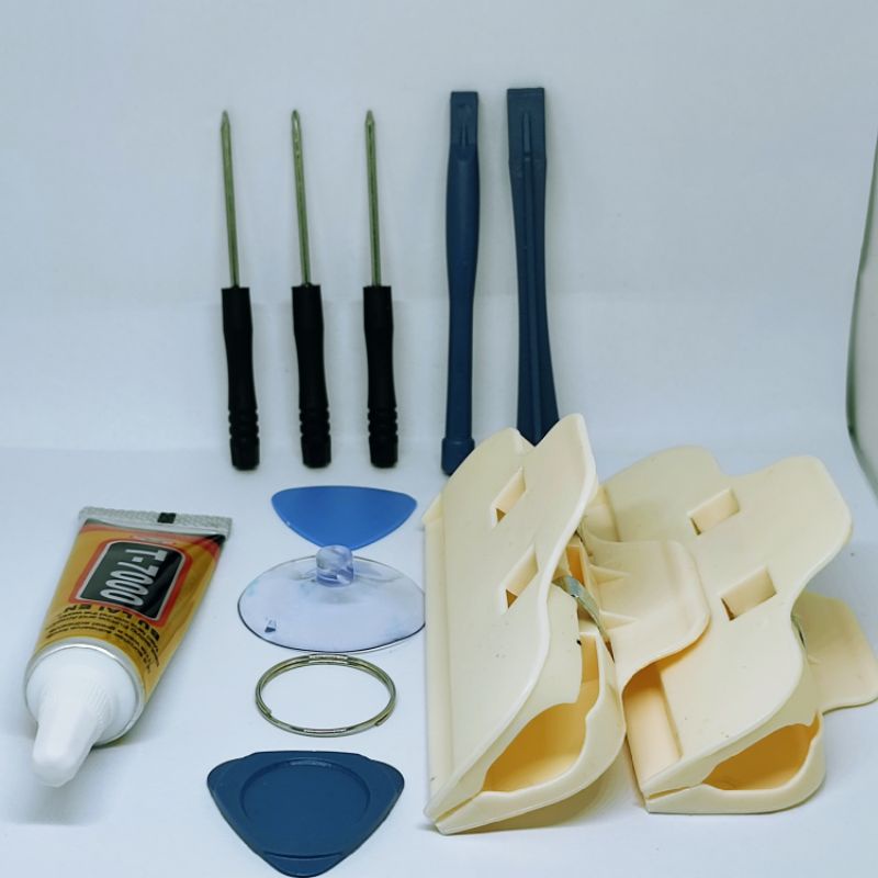 FREE ONGKIR (PAKET KUMPLIT) ALAT SERVIS HP HANDPONE ALAT BONGKAR HP OBENG 8IN 1 SET + LEM T7000 15ML + PENJEPIT LCD 2PCS