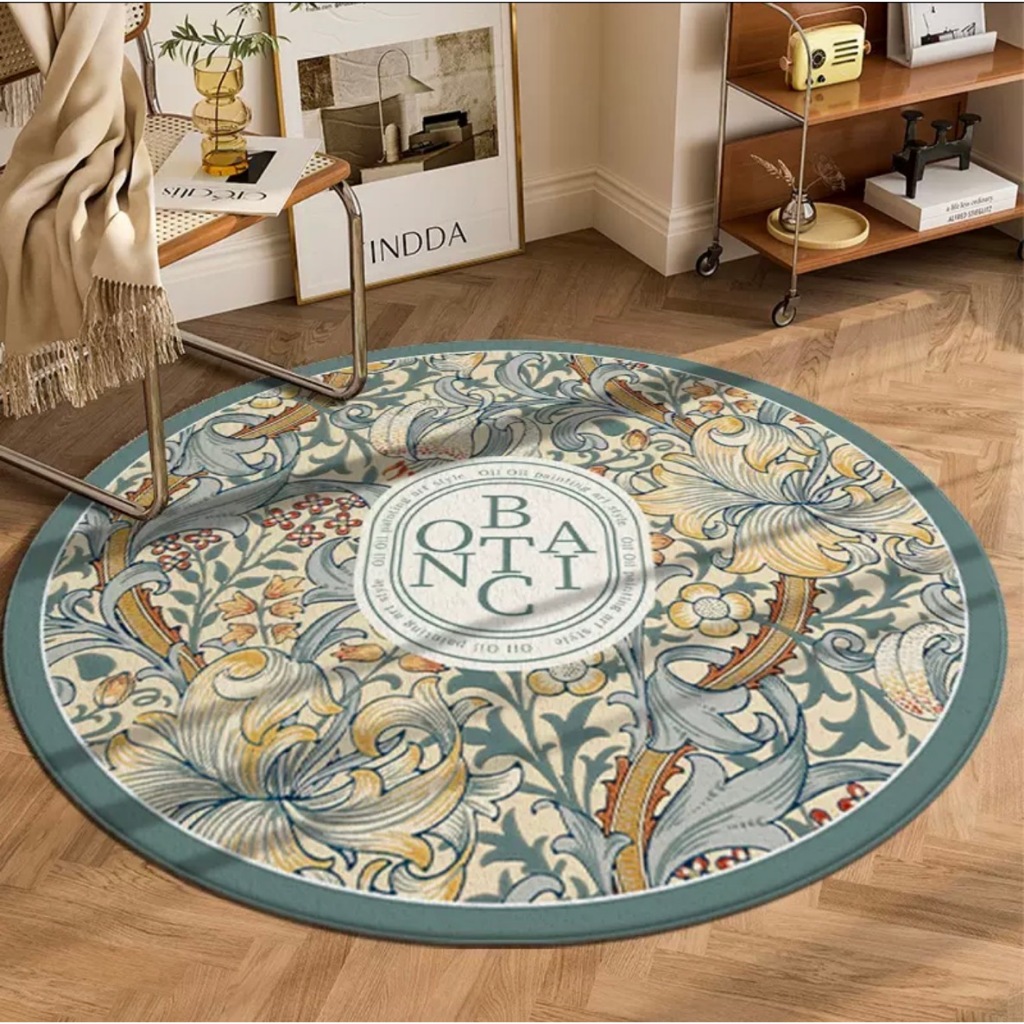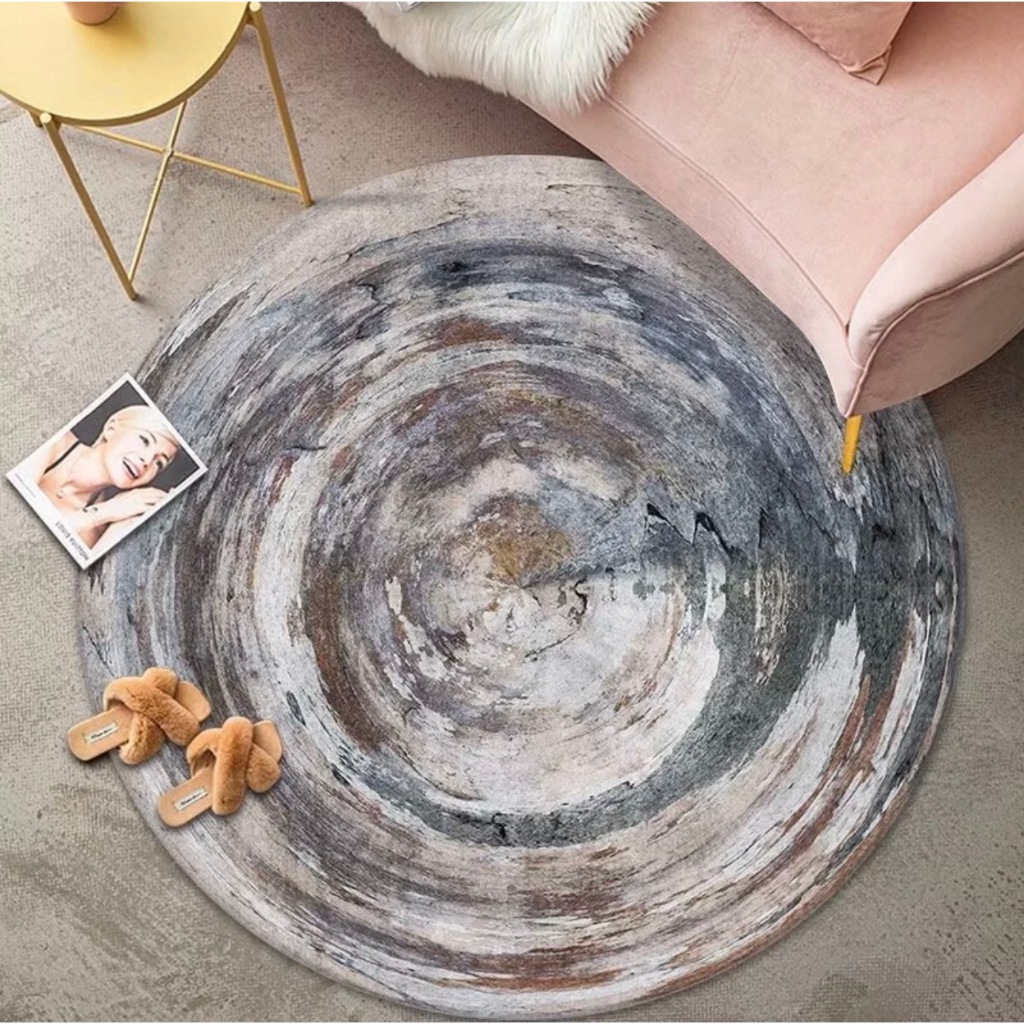 Karpet Motif Minimali Polyester BULAT 90x90CM / 120x120CM PREMIUM Anti Slip / Karpet Bulat Lantai Meja Ruang tamu