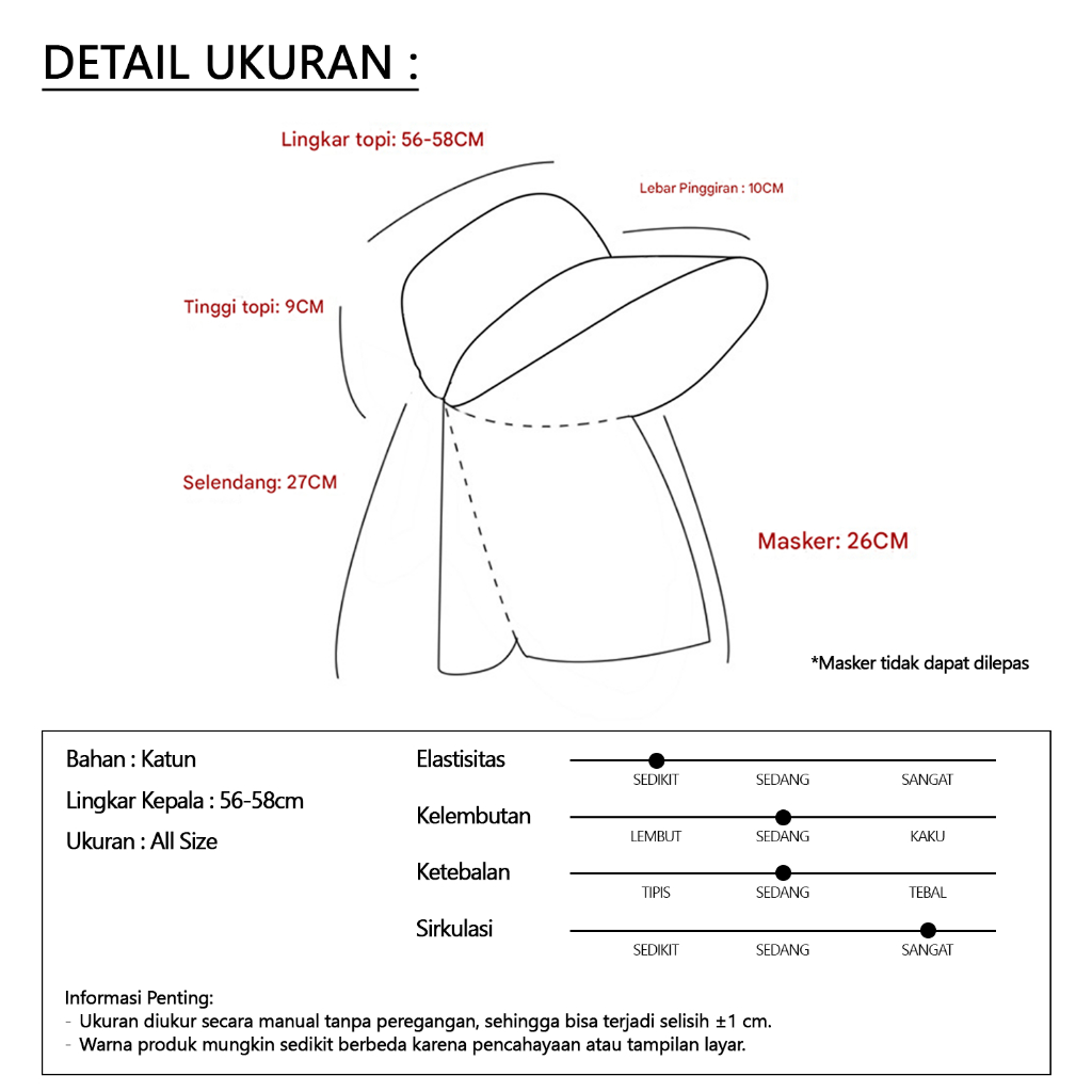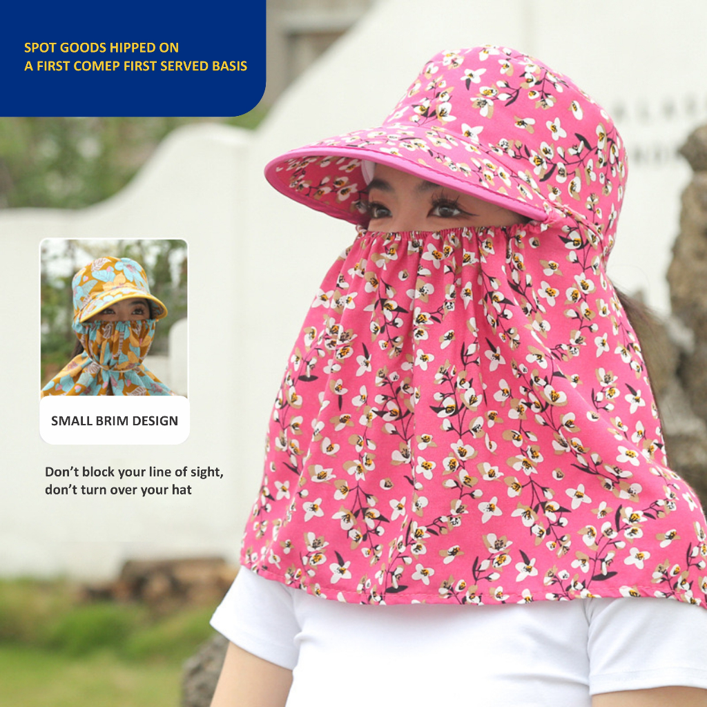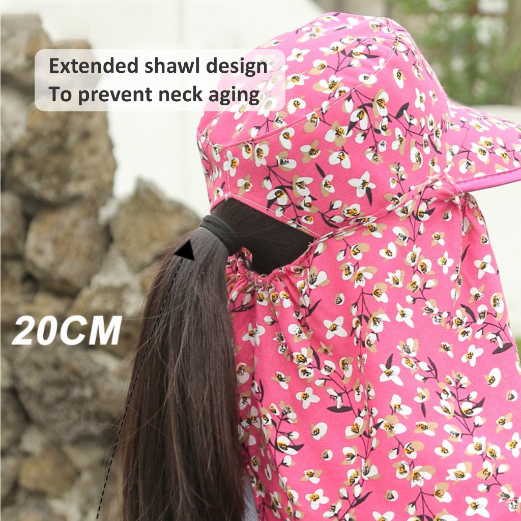 Topi Visor Lipat Wanita Anti UV Lebar / Topi Cadar Penutup Wajah / Topi Pantai Cadar Lebar