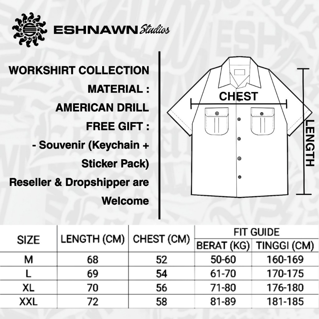 Workshirt - Workshirt Eshnawn Studios Fuckesh - Kemeja Kerja - Kemeja Workshirt - Kemeja Pria - Kemeja Pendek - Kemeja B