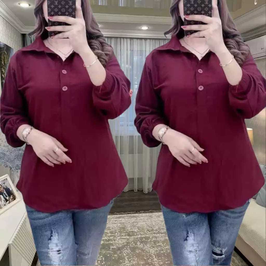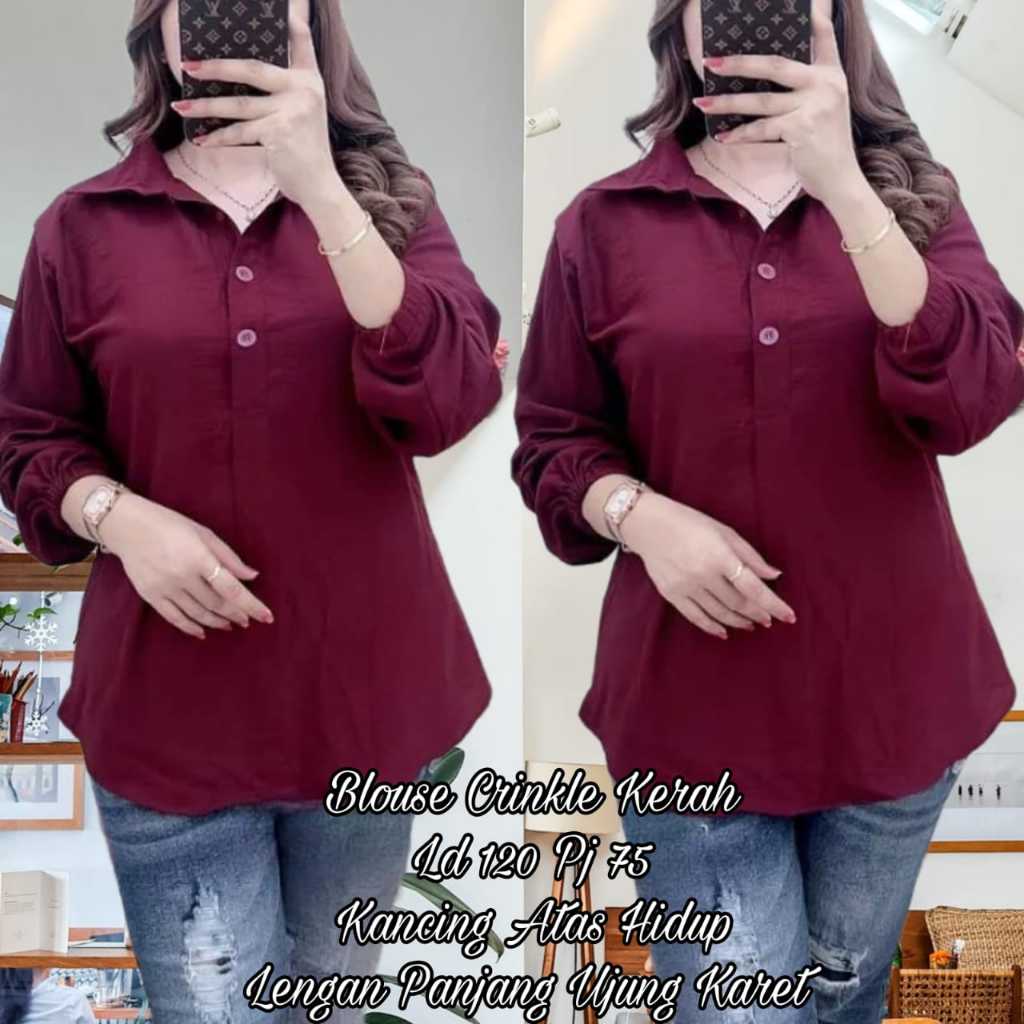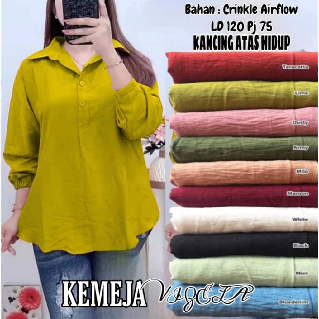 [Mall] Kemeja Wanita Crinkle Airflow Terbaru el Kancing tiga Pakaian Wanita Atasan Kemeja & Blouse