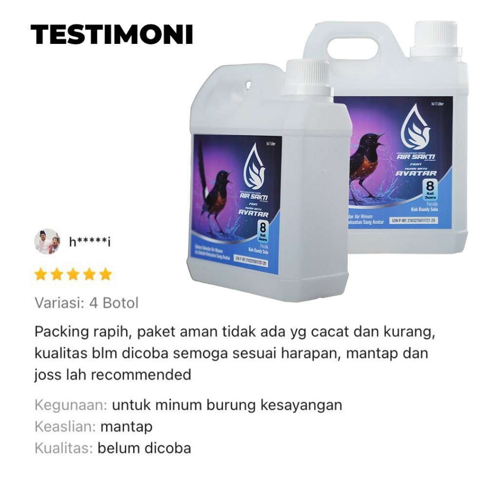Air Sakti Feat Avatar 1 Liter By Umi Kasum Anti Oksidan Tinggi Cocok untuk Semua Jenis Burung Kicau