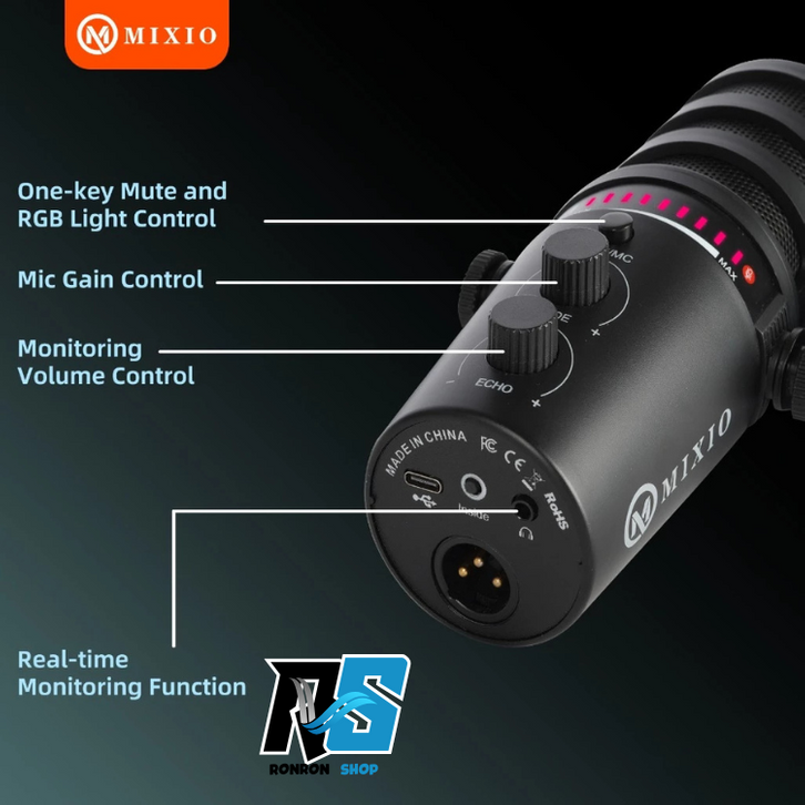 MIXIO TL-H2 Condenser Microphone USB Type-C XLR with Noise Reduction Streaming &Gaming for Phone & PC